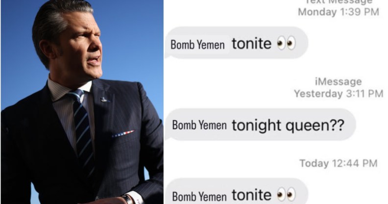 In a similar style, a text message jokes about Hegseth “drunk texting” reporters at The Atlantic daily with messages that read: “Bomb Yemen tonite.”