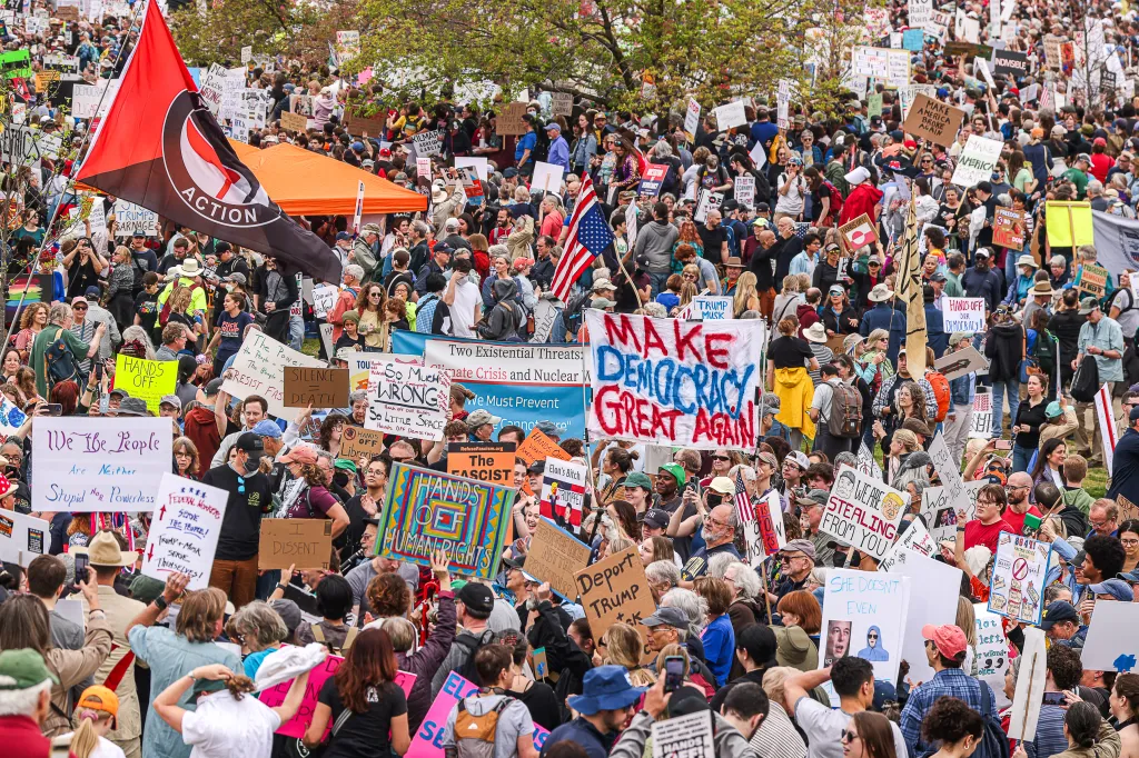 On Saturday (5 April), thousands of people in cities across the US attended the largest anti-Trump protests since the president took power for a second time in January, with many of the protesters seen waving LGBTQ+ and trans Pride flags.