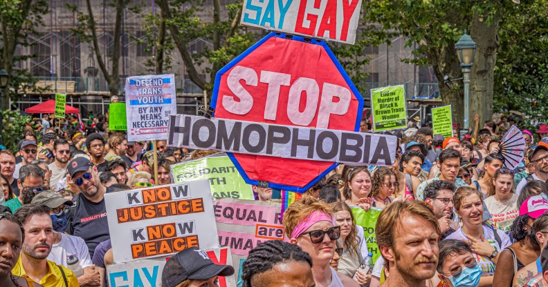 A Pride march in New York (Photo by Erik McGregor/LightRocket via Getty Images)