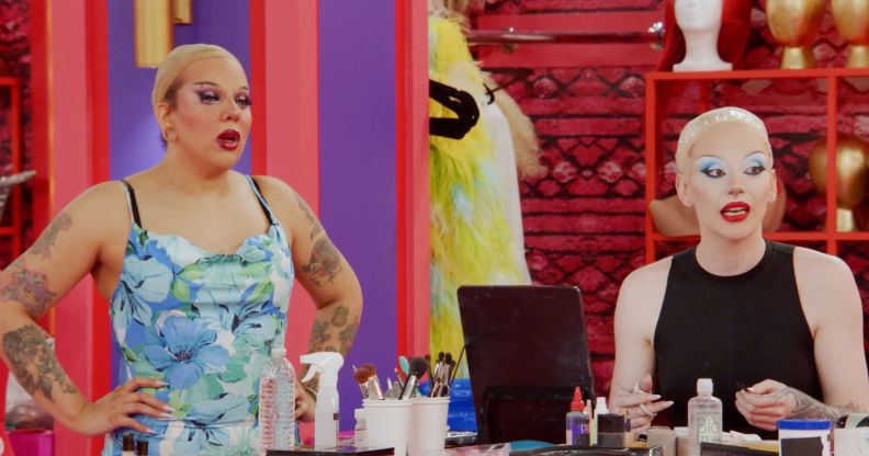 RuPaul’s Drag Race All Stars 10 queens Aja and Bosco discuss Trump targeting the trans community. (World of Wonder)