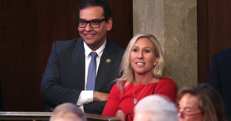 Marjorie Taylor Greene has urged Trump to pardon George Santos. (Win McNamee/Getty Images)