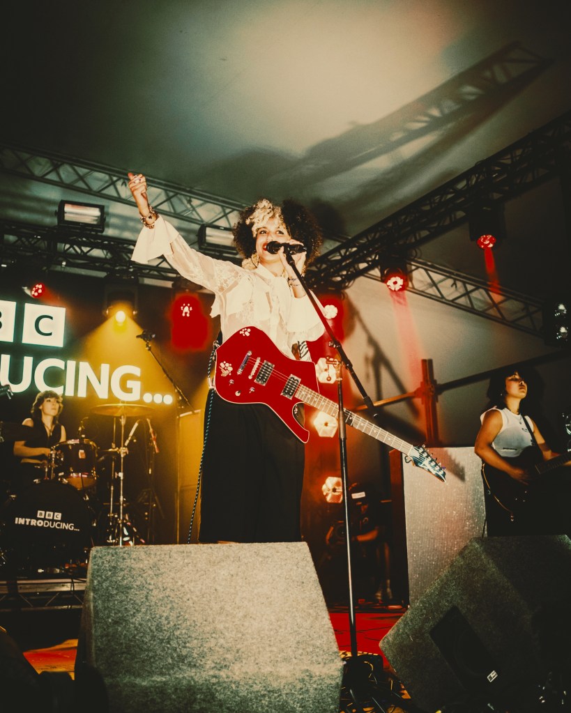 18 months on from the release of their viral track of sapphic angst, “She Likes a Boy”, Manchester-based Egyptian-Sudanese alt-pop artist Nxdia stepped out on to the BBC Introducing Stage at Reading Festival to an insane atmosphere.