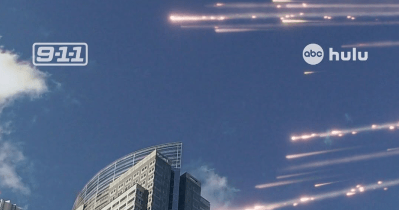 A still from one of the teasers for 9-1-1 season nine, which seems to show meteor or satellite impacts (ABC)