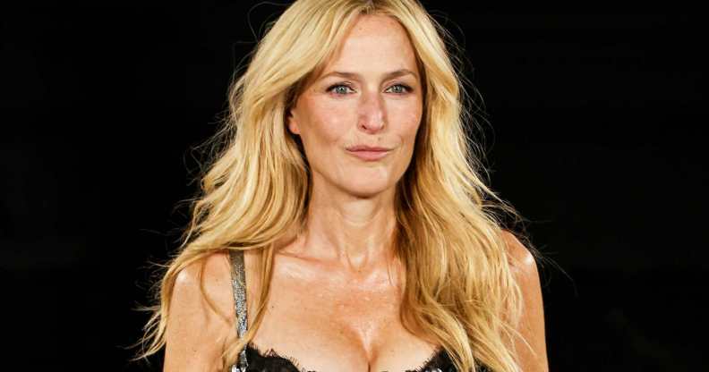 The X Files star, bi icon and universal crush of queer women everywhere, 56, took to the L’Oreal runway on the first night of the the legendary fashion week (29 September) in a gorgeous, ankle-length strappy dress featuring a metallic silver chain print.