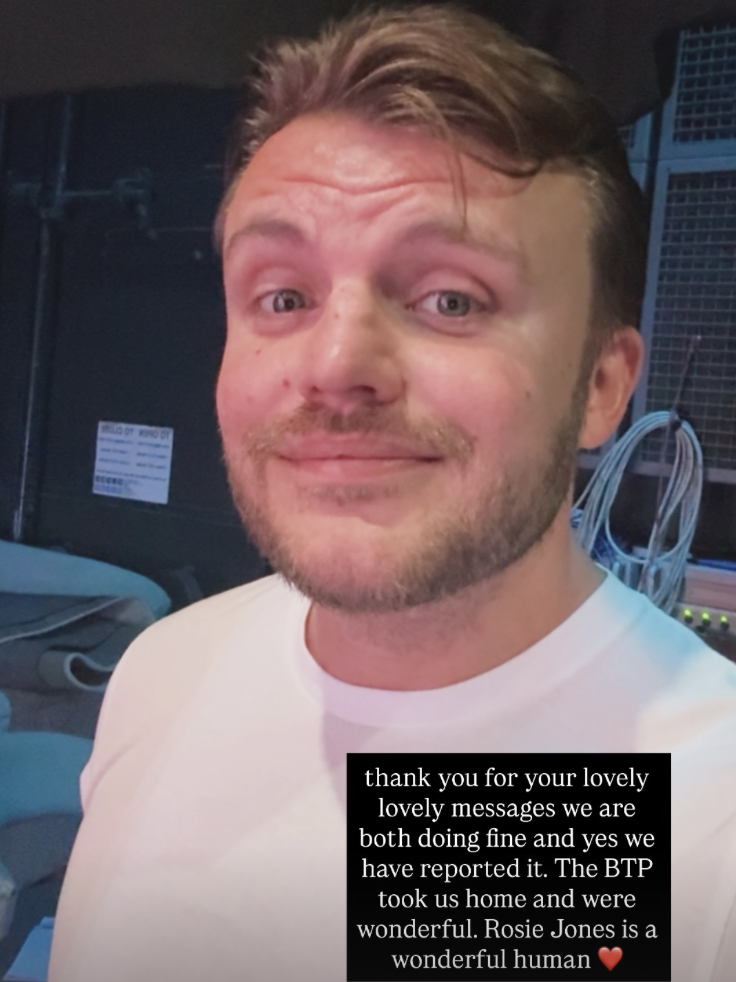 Jones revealed that she and fellow queer comedian and TV presenter Lee Peart were victims of the crime while on a train in a video posted to Peart’s Instagram Story.