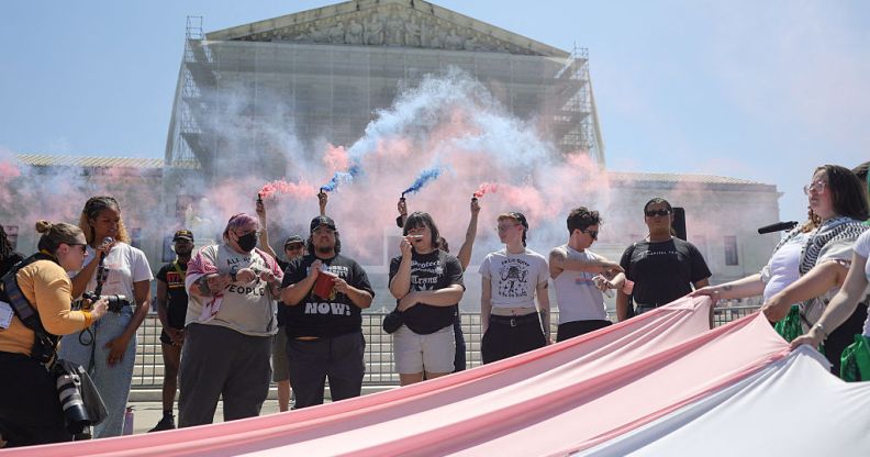 Trans rights protest outside the Supreme Court in June 2025 (Getty)