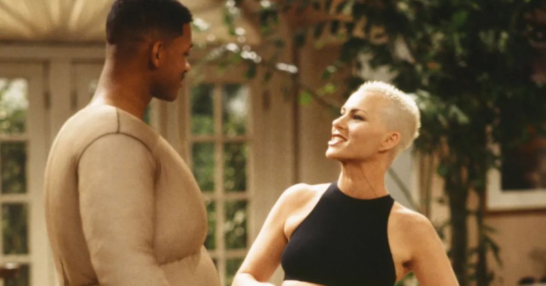 Susan Powter (R) in the Fresh Prince of Bel Air in 1994 (NBC)