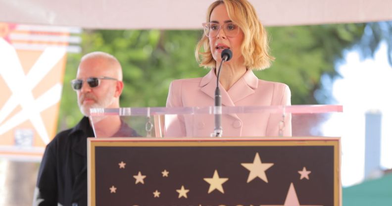 Sarah Paulson speaks at Ryan Murphy's Walk of Fame event in 2018 (Photo by Chelsea Lauren/Variety/Penske Media via Getty Images)