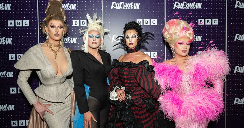 Silllexa Dixon, Catrin Feelings, Bones and Elle Vosque attend the photocall for the RuPaul's Drag Race UK Series 7 Finale at The W Hotel on November 27, 2025 in London, England. (Photo by Joseph Okpako/Getty Images)
