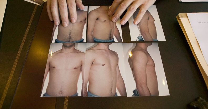 Image showing a cis male patient following gynecomastia surgery (male breast reduction) in 2004, (Getty Images)