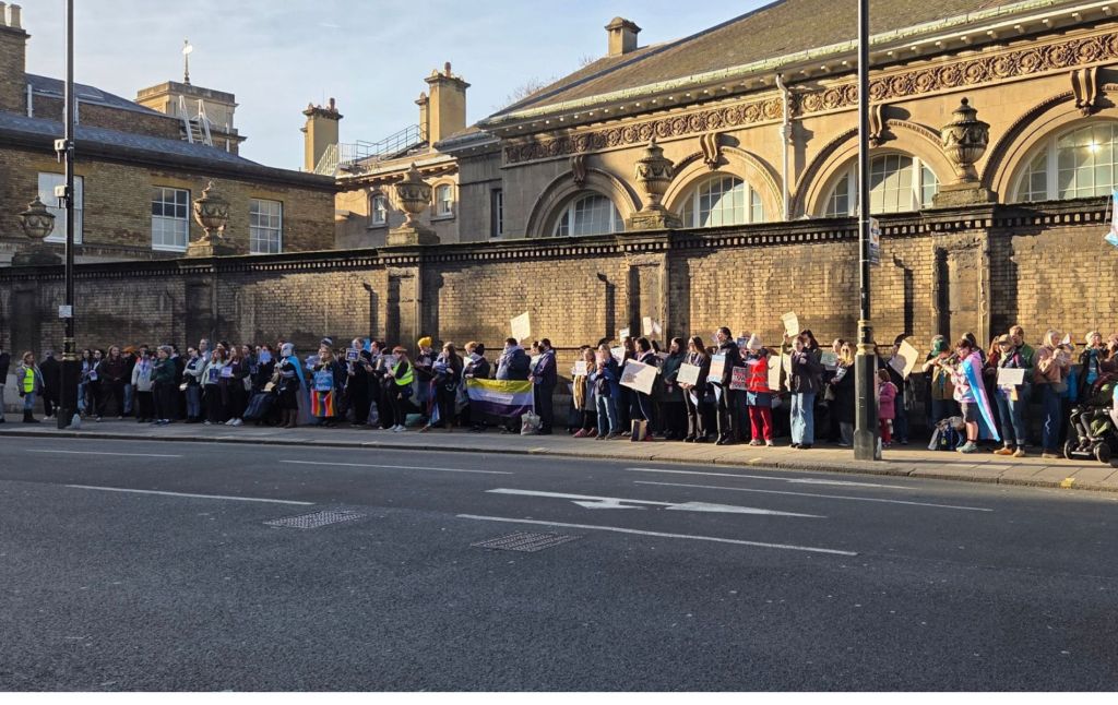 On Saturday afternoon (13 December) a demonstration – one of many happening across the UK during the weekend – took place outside Girlguiding’s headquarters on Buckingham Place Road, central London, led by campaign group Guiders Against Trans Exclusion.