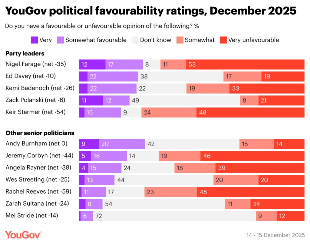 A YouGov poll published on Wednesday (16 December) revealed the Labour leader, 63, is among one of the most unpopular politicians in the UK today.