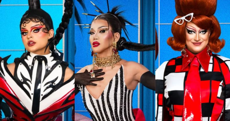 Drag Race UK vs the World season three queens Fontana, Minty Fresh and Kate Butch. (BBC)