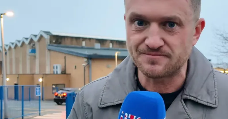 Tommy Robinson stalked a trans teacher to their home address after complaints from parents (Tommy Robinson/YouTube)