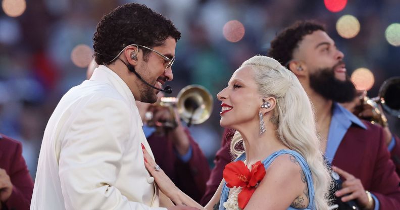 Bad Bunny was joined by Lady Gaga at his Super Bowl Half Time show. (Getty)