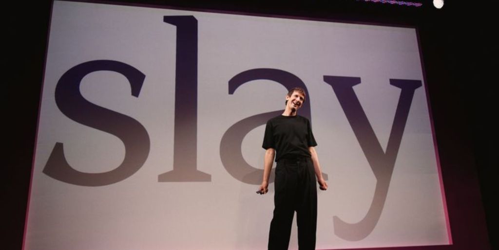 Try explaining it to a friend and you’ll be met with a blank face. Take said friend to see the show, and said face will be wet with tears of laughter, then proper tears, then joyful tears again. The PowerPoint flashes with words that guide and contradict Sharp’s stories; stories of being gay-bashed on a subway train by a fossilised European woman, of accidentally getting “a weenie massage”, of nearly dying in the Mexican sea in 2024. He has “memorised, like, psychotically” every slide. “We’re sort of treating PowerPoint like it’s a drum kit. It’s all rhythmic.”